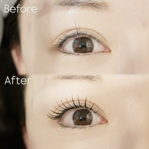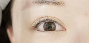 前回付いていたものが細いエクステだった為、太いエクステを束感が出やすいように少しだけミックスしてデザインをお作りいたしました。目尻は横幅が出るようにカールを緩めて、流すようにお付けしました。