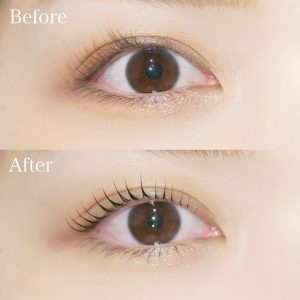 直毛気味なハリのあるまつ毛が、ねこまんまロッドを使用することで根元からしっかりと立ち上がり、お目元のキラキラとした可愛さが強調されました。
