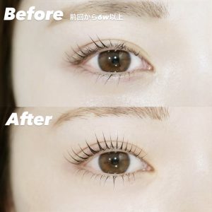 又、まつ毛のあげ方に関しても都度まつ毛の状態を確認し、見え方が同じようになるよう毎回試行錯誤してあげております。1ヶ月綺麗な状態が保てるよう丁寧に施術してまいります。