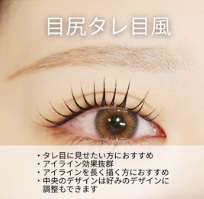 ・目尻を流してタレ目風に見えるデザイン